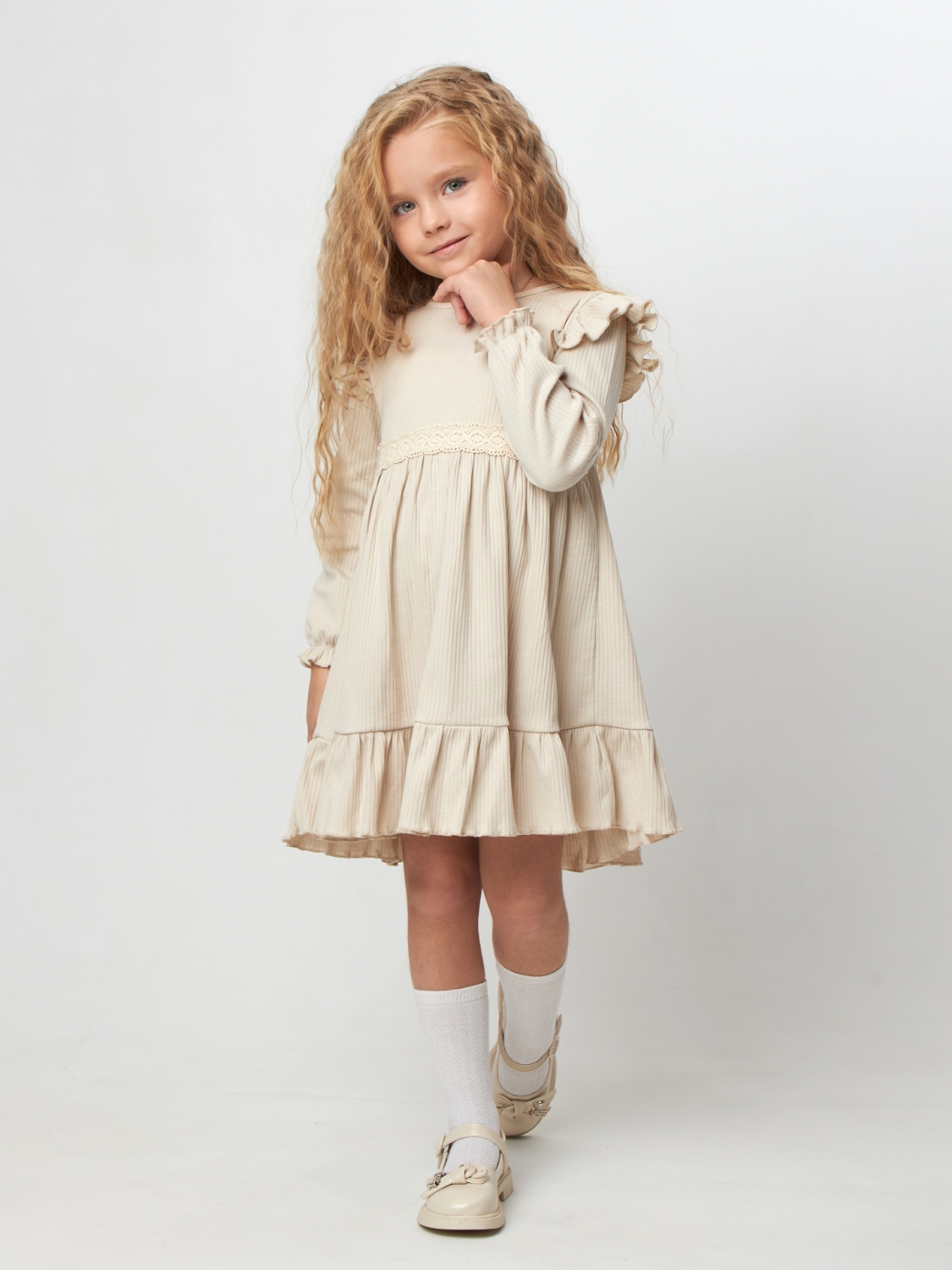 Теги: Платья детские из мулина оптом. 332. Платье детское из лапши, хлопок 100%, бежевое, р. 98,104,110,116 цена,отзывы официальный сайт "Стеша Нальчик"